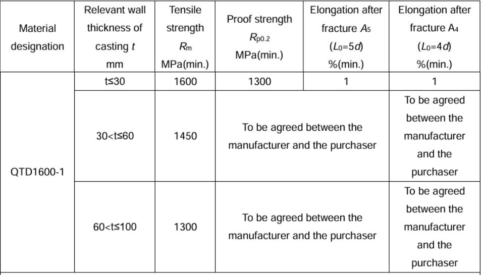 Для динамических нагрузок, требующих высокой прочности, предпочтительны высокоудлиненные сорта, такие как QTD900. Для статических нагрузок можно определить приоритеты показателей прочности, таких как QTD1400.
